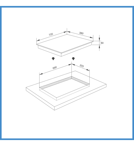 - Kích thước mặt kính: W720 x D380 x H60 mm