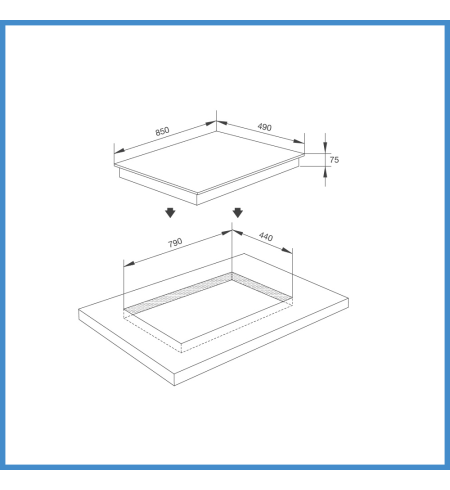 - Kích thước mặt kính: W850 x D490 x H75 mm