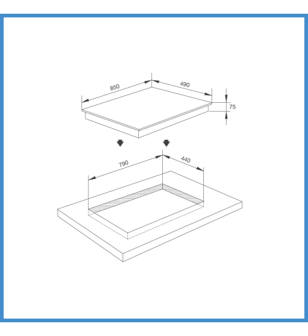 - Kích thước khoét đá: W790 x D440 mm