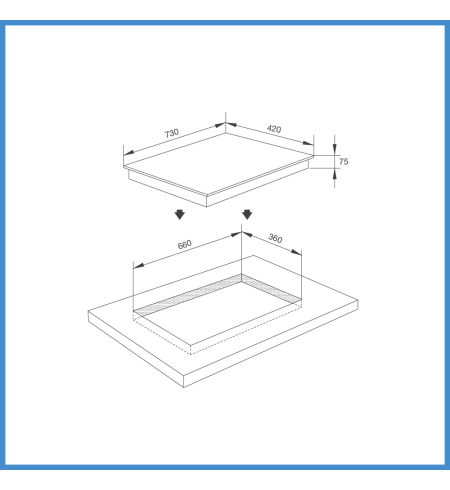 - Kích thước mặt kính: W730 x D420 x H75 mm