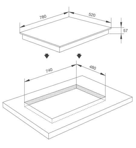 - Kích thước mặt kính: W780 x D520 x H57 mm